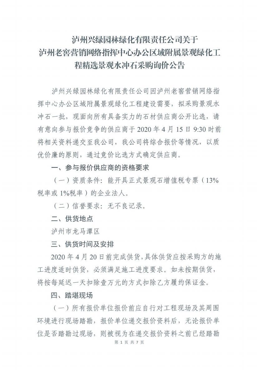 附件1:泸州老窖营销网络指挥中心办公区域附属景观绿化工程景观水冲石采购报价表.xlsx