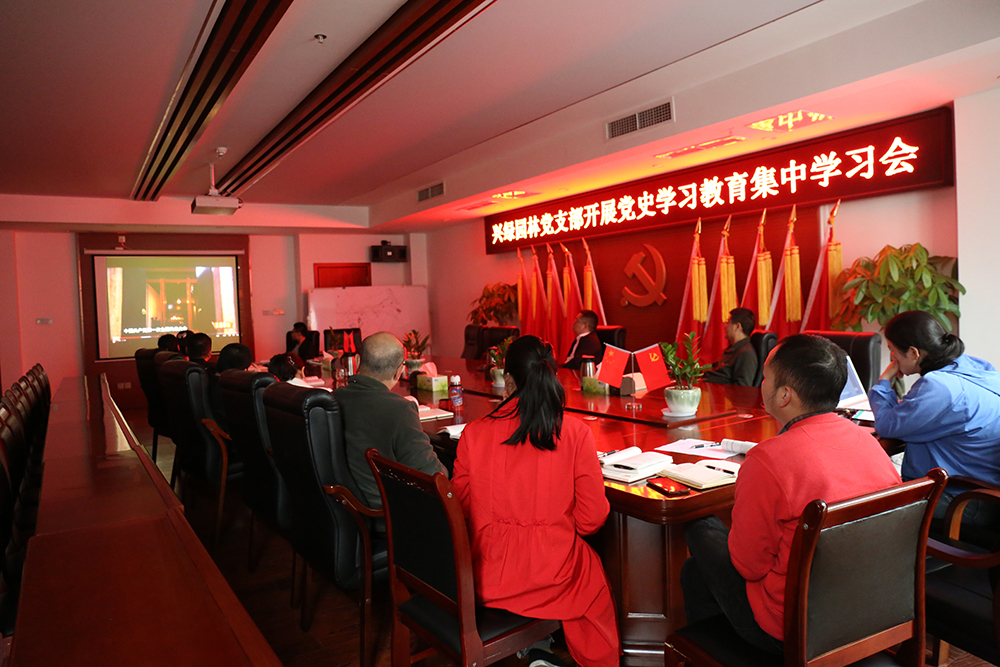 4月14日,兴绿园林党支部开展党史学习教育集中学习,会议集中学习了习近平《论中国共产党历史》内容,集中观看了红色影片《精神的追求》第一集和第二集。
