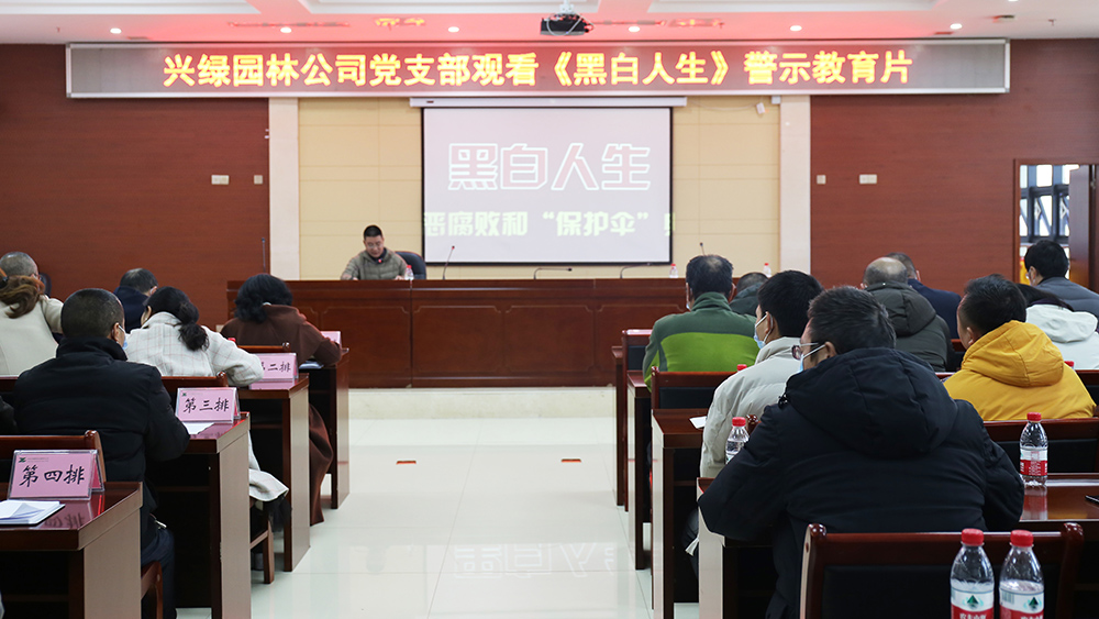 廉洁党课前,公司全体干部职工观看了《黑白人生》警示教育片。