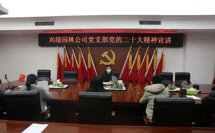 12月15日下午,为深入学习贯彻党的二十大报告精神,兴绿园林公司党支部开展党的二十大精神专题系列学习活动,党员干部、部分群众参加会议。