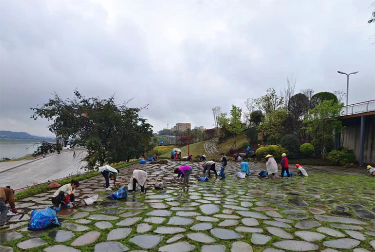 在长江滨江公园、小关门、三道桥、恒大御江湾、四公里等维护绿地,随处可见身穿绿色工作服的兴绿园林公司绿化工人忙碌的身影,他们除草、松土、补植、浇水、打支撑,最后清洁场地,分工合作,井然有序,一片繁忙的景象。