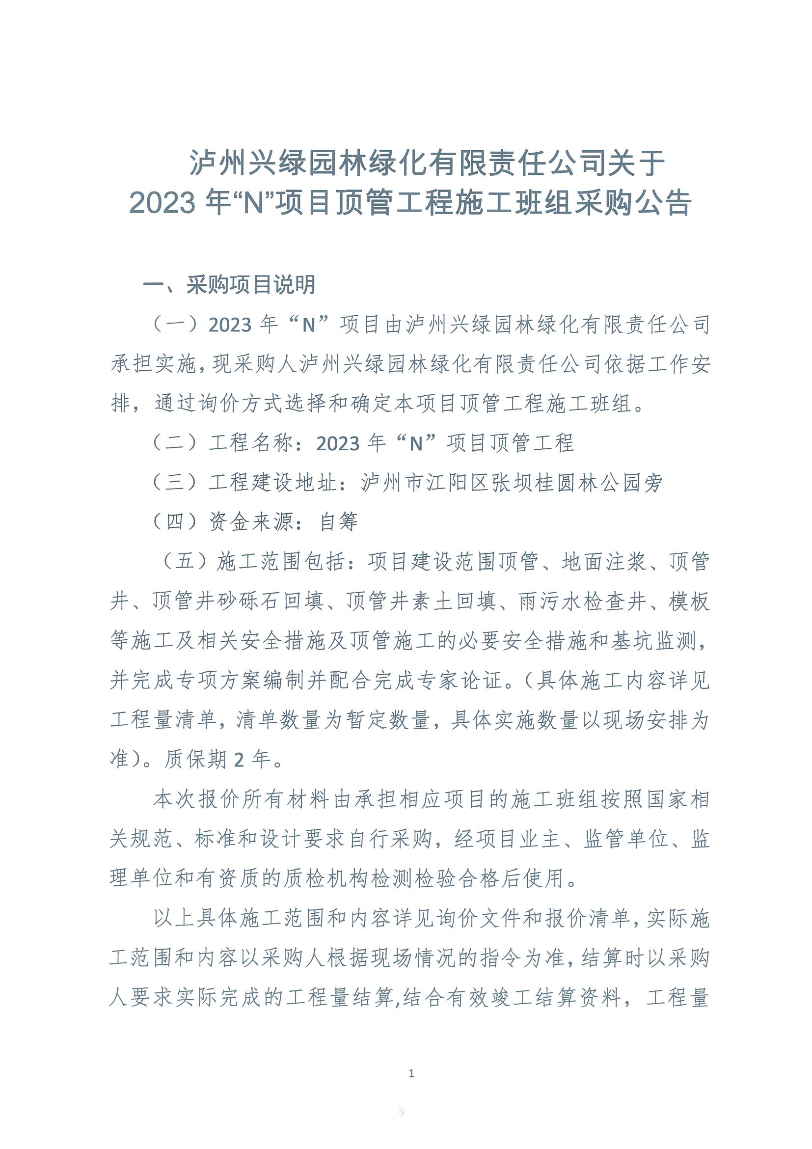 (一)2023年“N”项目由乐动平台承担实施,现采购人乐动平台依据工作安排,通过询价方式选择和确定本项目顶管工程施工班组。
