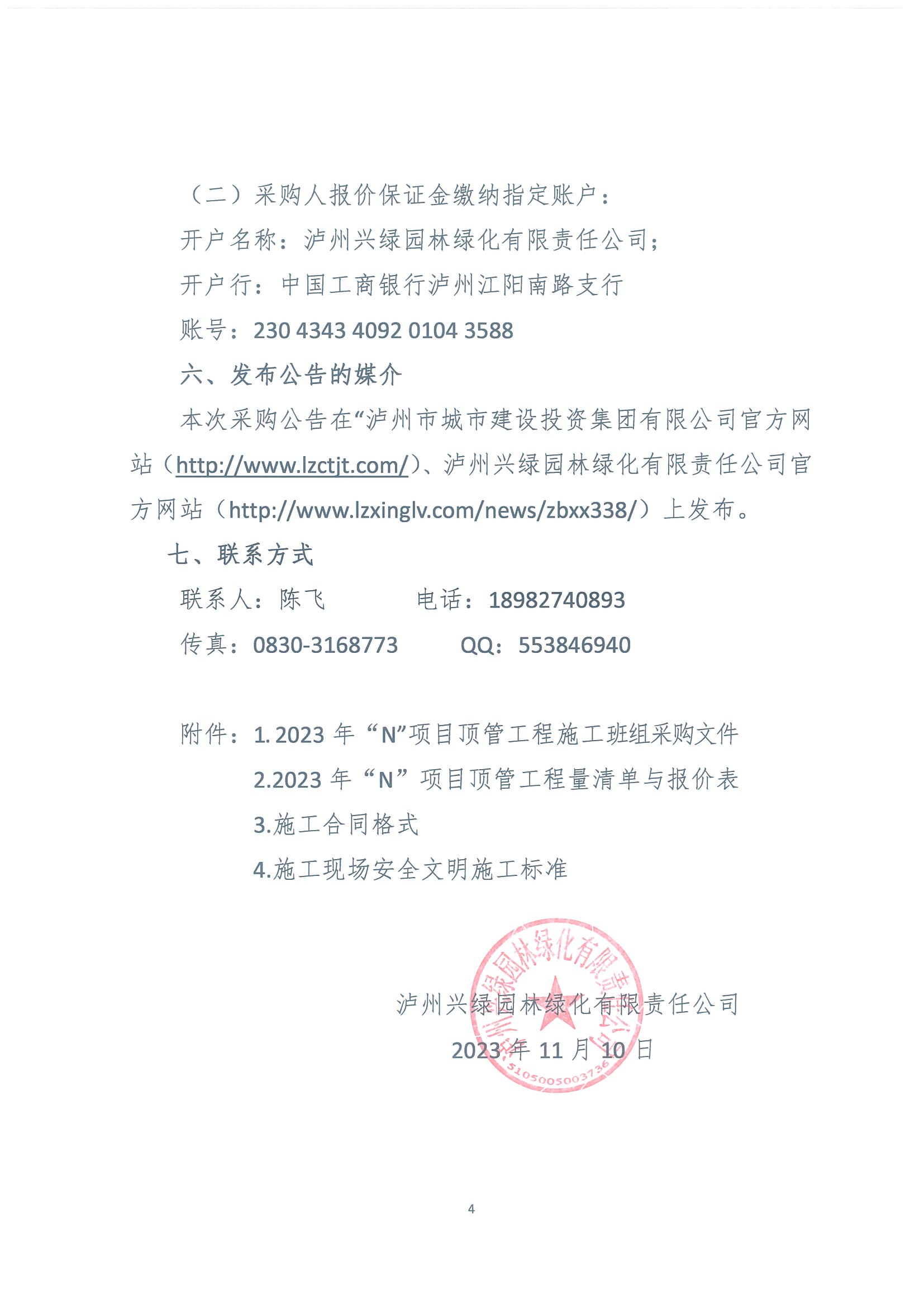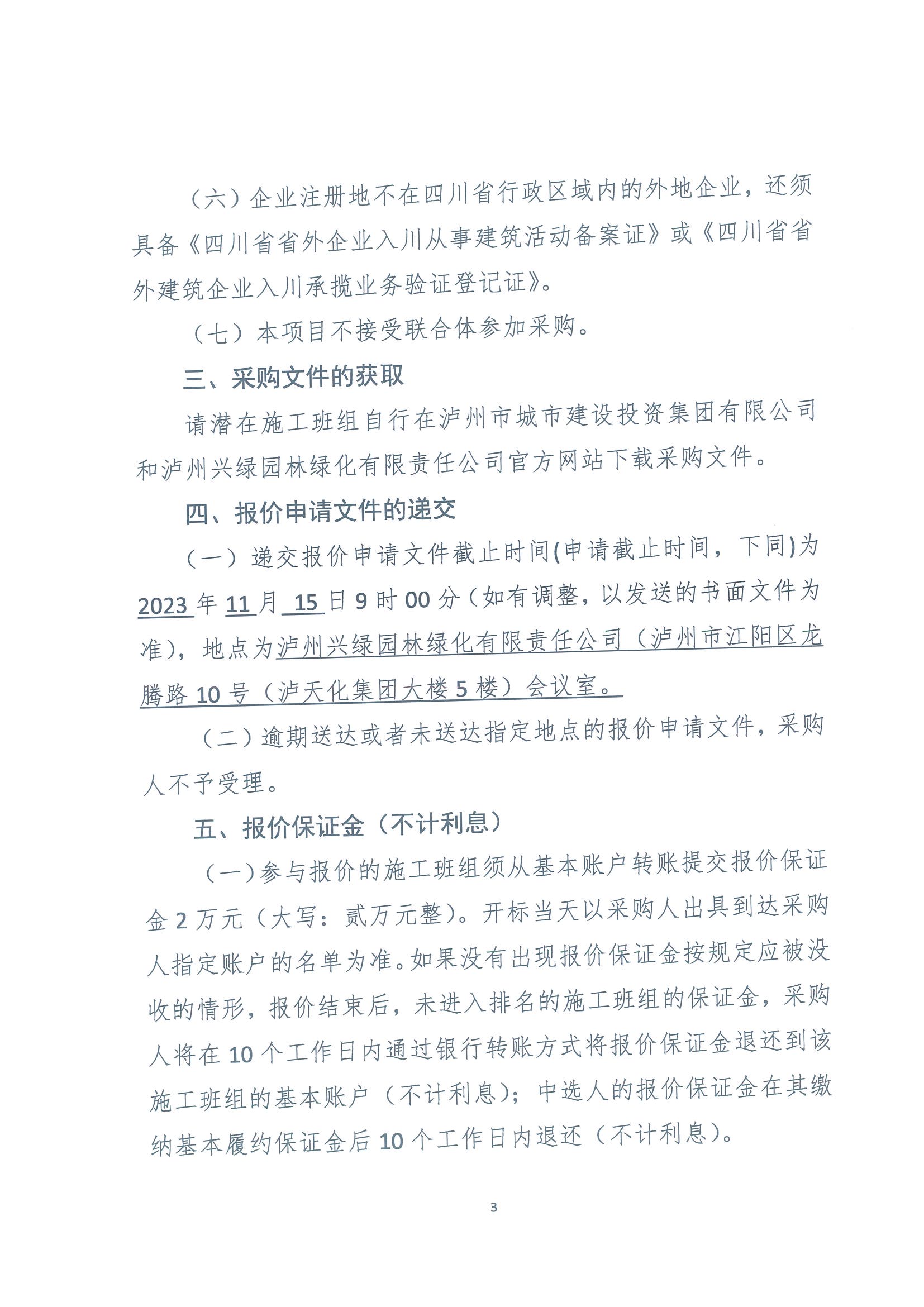 请潜在施工班组自行在泸州市城市建设投资集团有限公司和乐动平台官方网站下载采购文件。