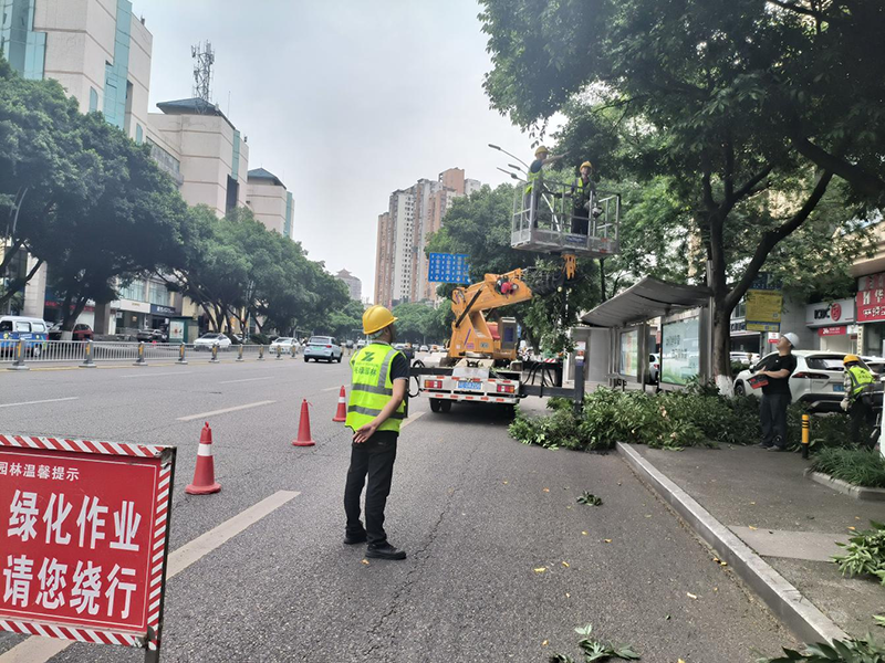 为保障城市道路交通安全与景观美观,兴绿园林公司积极开展夏季道路绿地修剪行动。此次行动聚焦龙驰路、丹艳路、胜景南路,瑞丰东路、龙翔西路,春景下路、沱江路一段、沱江路四段、汇金路、醇香路等10条重点道路,出动登高车17次,作业工人175人次,以精细化作业为市民打造更安全、舒适的出行环境。